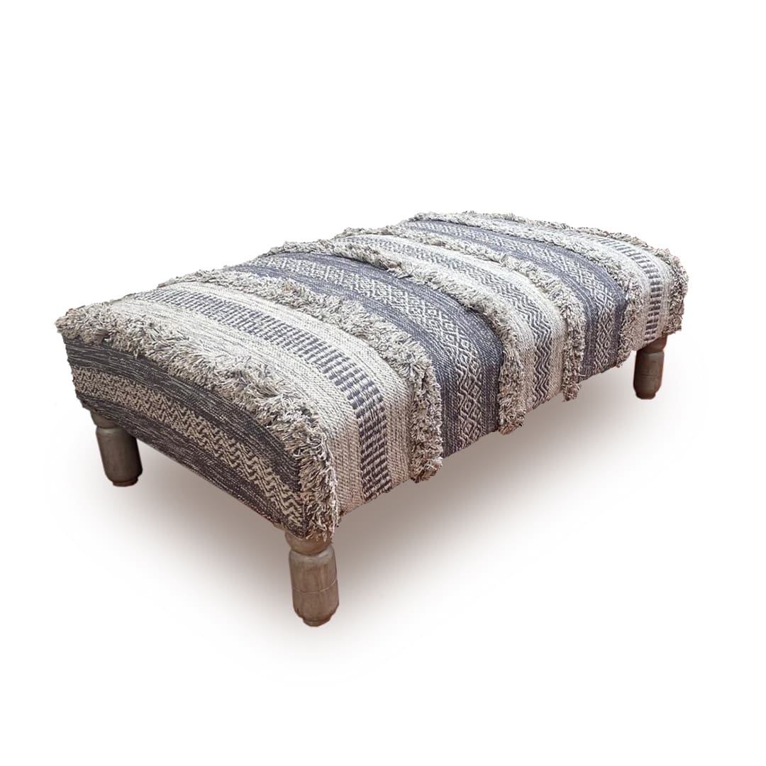 Banca tapizada con tela 100% algodón, estampada con diseños y filigranas características de la cultura.